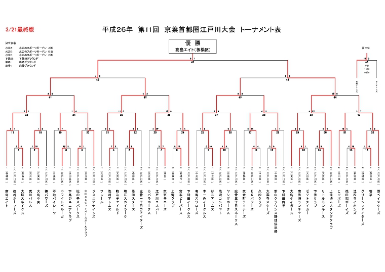 - 48チーム (江戸川区21チーム, 他区県26チーム, 前年度優勝チーム)